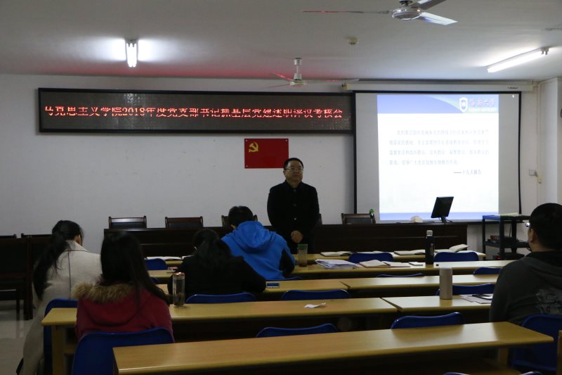 1月2日下午,sunbet申搏官方网站2018年度党支部书记抓基层党建述职评议考核会在社科楼315顺利举行,学院党委书记段捷频,党委副书记张井富出席,党委委员以及学院各党支部书记参加会议,会议由张井富主持。