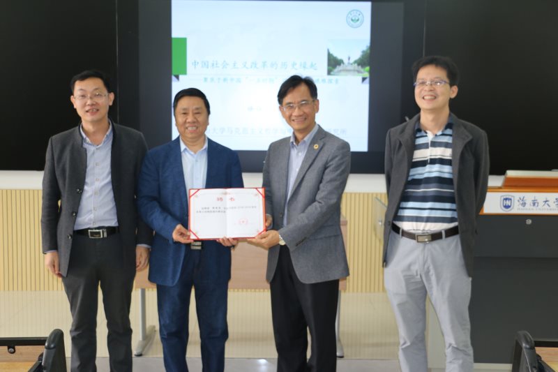 1月9日至11日,sunbet申搏官方网站2018-2019学年冬季小学期名家讲堂第五讲在五号教学楼113教室举行。中山大学徐俊忠教授应邀为sunbet申搏学生作以毛泽东思想为主题的三场学术报告。院长张云阁出席并为徐俊忠教授颁发sunbet申搏官方网站“冬季小学期授课外聘专家”证书,副院长吴朝阳出席。讲座由思想政治教育系主任陈招万主持。