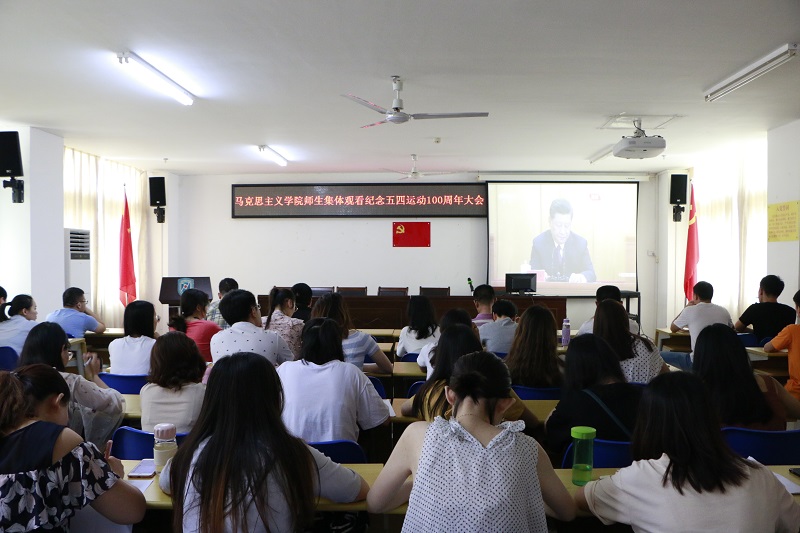 4月30日上午,sunbet申搏官方网站组织师生在社科楼A315集体观看了“纪念五四运动100周年大会”的直播实况。院党委书记段捷频、副书记张井富、研究生辅导员张君成与全体在校研究生及部分本科生一起观看直播。