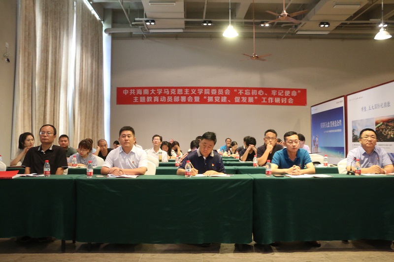 段捷频以“坚持旗帜引领 激发前进动力 凝心聚力促发展”为题作“不忘初心、牢记使命”主题教育动员讲话。他结合学院党建工作实际情况强调了三点意见。一是全体党员要充分认识开展主题教育的重大意义,把思想和行动统一到中央、省委及学校党委的决策部署上来。他指出,开展“不忘初心、牢记使命”主题教育是全面贯彻落实中央的重大决策部署的需要、是加快建设美好新海南的时代需要、是推进学院内涵发展的重要抓手。在新时代的新矛盾新挑战新征程中,广大党员要把“初心”和“使命”融入到发展的全过程,贯穿到各个环节,覆盖到各个方面,艰苦奋斗、攻坚克难,为学校“双一流”建设,海南自由贸易试验区和中国特色自由贸易港建设和中华民族伟大复兴的中国梦的实现推波助力。二是要准确把握主题教育活动的目标任务和工作安排。他强调,全体党员要学深悟透习近平新时代中国特色社会主义思想,提高运用党的创新理论指导实践、推动工作的能力;既要准确把握主题教育的总要求,也要结合马院实际、突出马院特色,在深刻理解主题教育的目标任务,要认真落实主题教育的工作安排。要紧紧围绕目标任务,紧紧结合教学、科研、学科建设、人才培养等重点工作,认真谋划、部署推进主题教育的各项工作。三是强化落实工作保障,确保主题教育抓实抓好抓出成效。他强调,学院党委要加强组织领导,强化政治担当,确保工作谋划统筹推进;要加强宣传引导,重视舆论宣传工作,营造主题教育的浓厚氛围;要完善和细化主题教育工作举措,确保主题教育抓实抓细、抓出成效,推动党中央和省委、校党委各项部署落地落实。