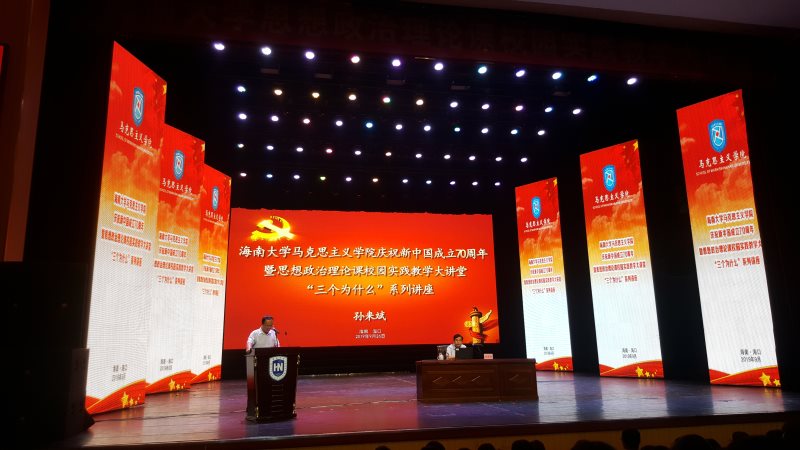 9月26日下午,应sunbet申搏官方网站邀请,教育部习近平新时代中国特色社会主义思想研究中心特约研究员、北京大学sunbet申搏官方网站博士生导师孙来斌教授莅临sunbet申搏官方网站思源学堂大礼堂做学术讲座。本次讲座是sunbet申搏官方网站庆祝新中国成立70周年暨思想政治理论课校园实践教学大讲堂“三个为什么”系列讲座的第二讲,也是学校党委开展“不忘初心、牢记使命”主题教育的重要内容。