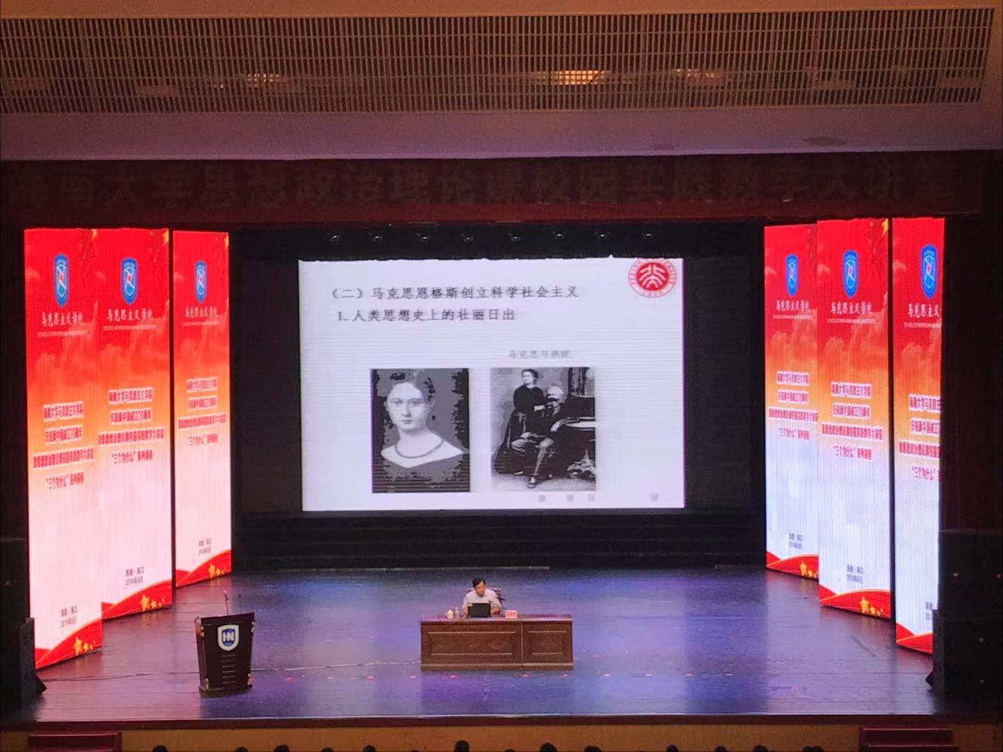 sunbet申搏官方网站党委书记武耀廷,副校长胡新文、王崇敏、梁谋、叶光亮,校党委常委、组织部部长韩淑梅,校党委常委、宣传部部长谭勇,各学院书记、副书记,全校各党支部书记,sunbet申搏官方网站思想政治理论课教师,2018级部分本科生共计1000余人聆听讲座。讲座由马克思主义副院长王善主持。
