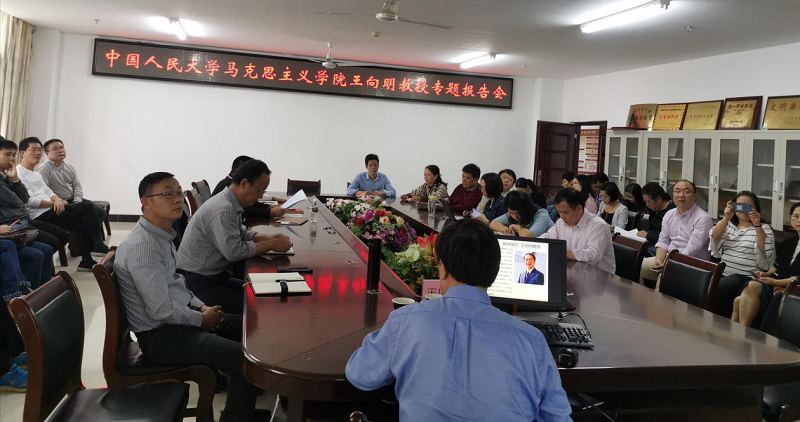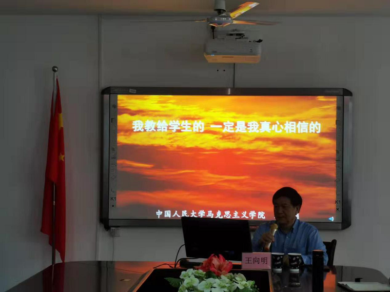 会上,王向明教授以“我教给学生的一定是我真心相信的”为主题进行专题报告会,他以若干马克思主义经典著作为例,让教师要读透马列著作,其次指出在教学中要深入分析、启发思考,要做到阐明基本观点、讲清基本事实、引导学生思考、改进教学方法。教学中还要典型示范、注重方法。最后强调在思政课教学中要以真理的力量感召人、以坚定的信仰引领人、以人格的力量感染人、以真挚的情感打动人。