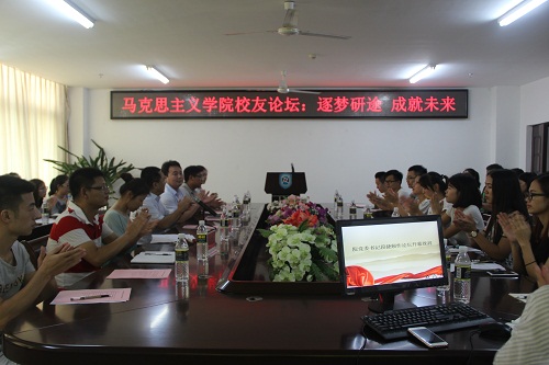 9月11日下午,为贯彻落实海南省委宣传部与sunbet申搏官方网站共建sunbet申搏官方网站的共建内容,进一步提升马学科学生培养质量,充分利用校友资源,帮助在校研究生合理规划职业生涯,提升就业竞争力,sunbet申搏官方网站主题为“逐梦研途 成就未来”的校友论坛在社科楼A311举行,为学院系列校友论坛活动拉开序幕。