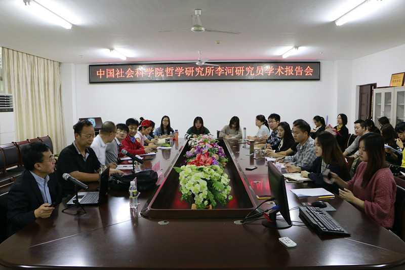 11月20日上午,sunbet申搏官方网站在社科楼311会议室召开了主题为“文明冲突与中国道路”的学术报告会。此次报告会邀请了中国社会科学院哲学所、现代外国哲学研究室李河研究员为主讲嘉宾,sunbet申搏副院长王善担任主持,学院全体在校研究生和部分老师共同参与。