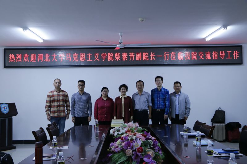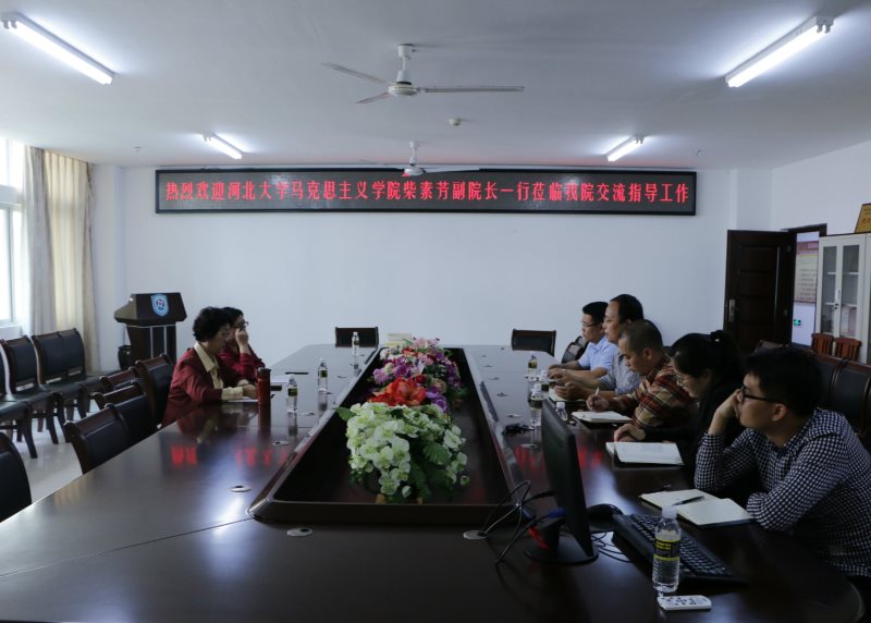 3月23日下午,河北大学sunbet申搏官方网站副院长、博士生导师柴素芳教授一行2人到我校sunbet申搏官方网站考察交流,sunbet申搏官方网站副院长王善、马克思主义中国化教研部主任贺尧夫、形势与政策教研部主任温小平等5位教师参加了交流活动,活动由王善主持。