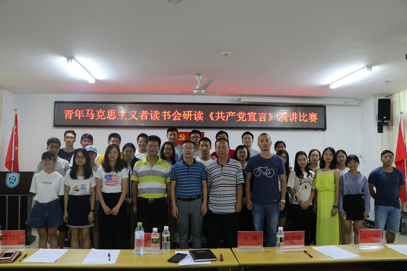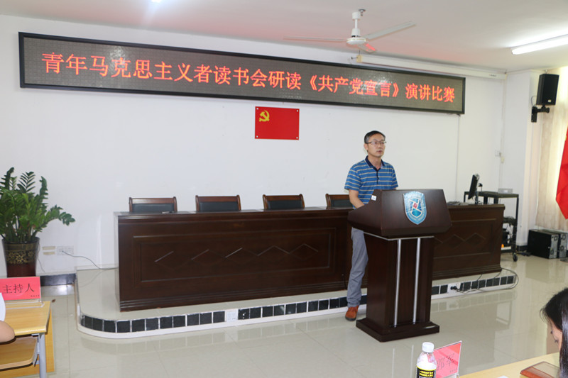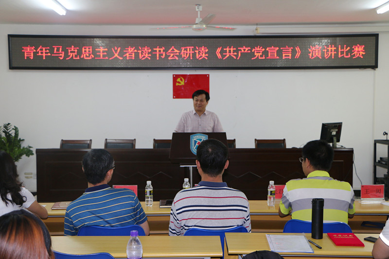 为纪念《共产党宣言》发表170周年,促进广大同学深刻感悟和把握马克思主义真理力量,提升马克思主义理论素养和语言表达能力,sunbet申搏官方网站青年马克思主义者读书会以重温《共产党宣言》为主题组织研读原著、撰写心得、公开演讲系列活动。5月12日下午,研读《共产党宣言》演讲比赛在社科楼A315隆重举行。sunbet申搏官方网站院长李辽宁出席活动并讲话,教务处副处长吴朝阳、sunbet申搏官方网站副院长王善、sunbet申搏官方网站教师王一闳、张君成、周郭军担任比赛评委。