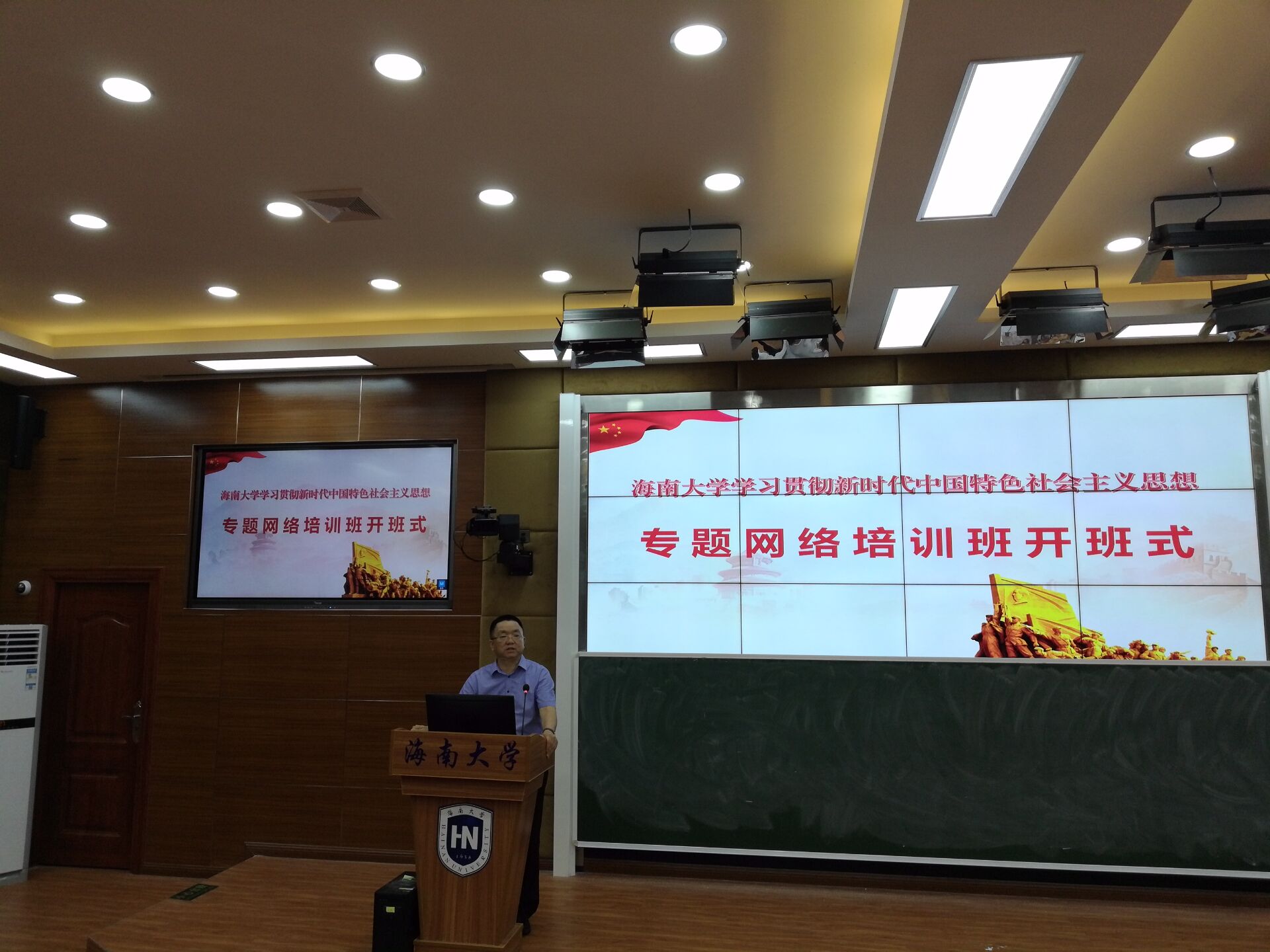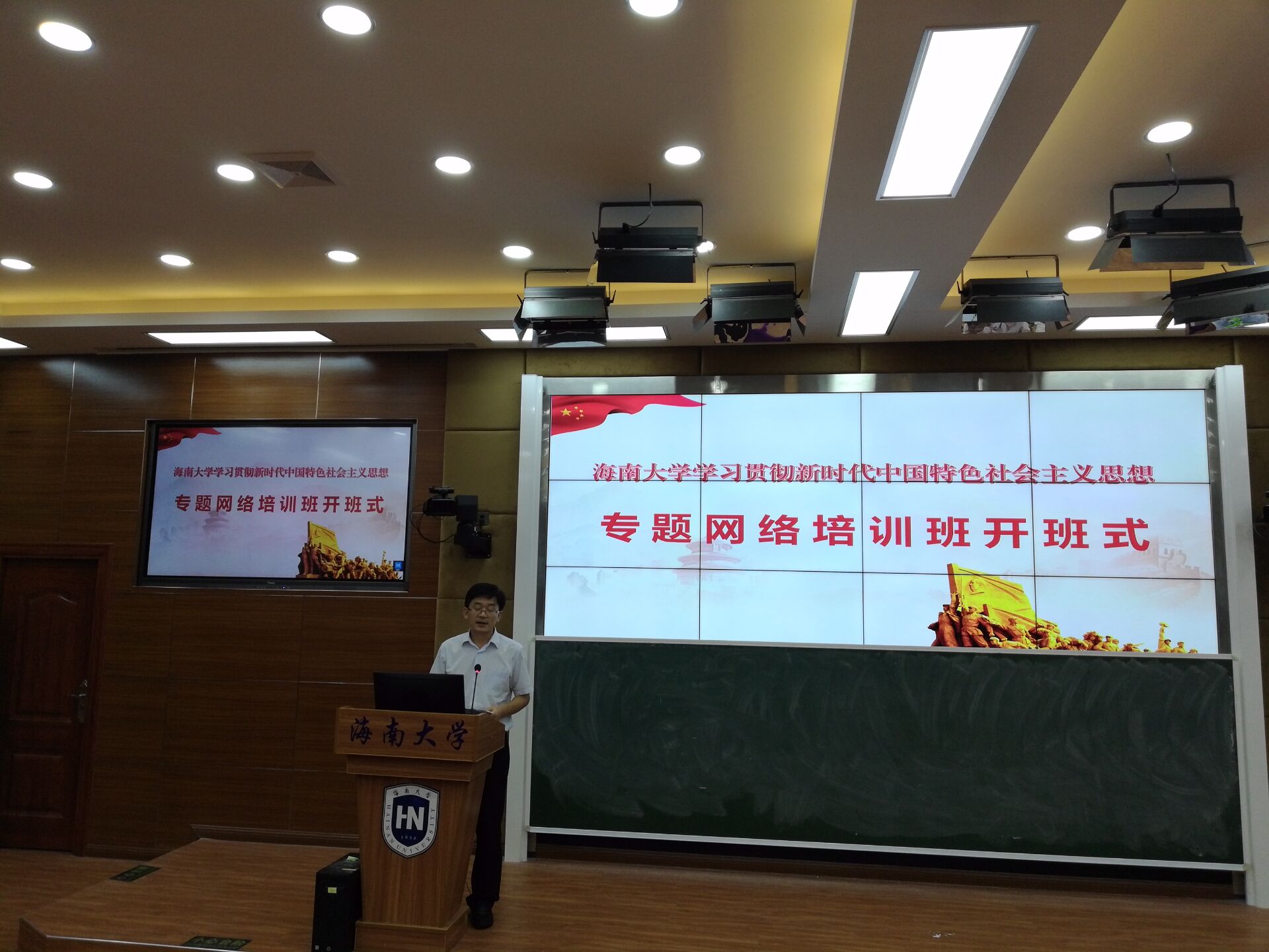 2018年6月26日下午4点半,sunbet申搏官方网站学习贯彻习近平新时代中国特色社会主义思想专题网络培训班开班仪式在3号教学楼211教室举行。sunbet申搏官方网站常务副书记廖清林,sunbet申搏官方网站党委常委、宣传部部长谭勇,sunbet申搏官方网站党委书记段捷频、院长李辽宁、副书记张井富、副院长王善出席开班仪式。段捷频主持开班仪式。