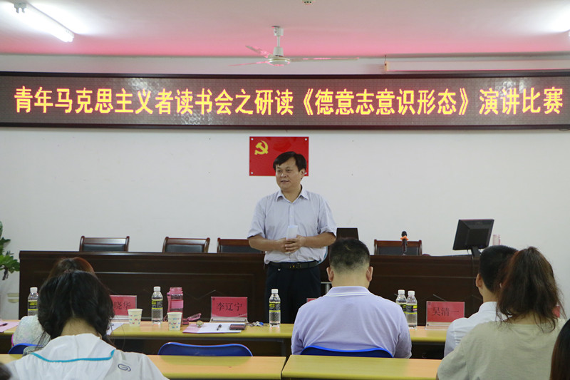 6月29日晚,sunbet申搏官方网站在社科楼315举行了研读《德意志意识形态》演讲比赛。sunbet申搏官方网站院长李辽宁、党委副书记张井富出席并担任演讲比赛的评委。