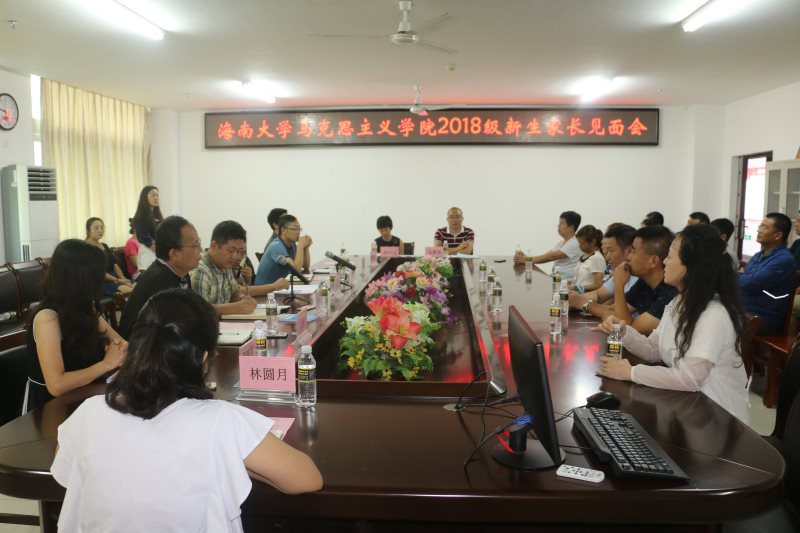 段捷频在新生见面会上讲话。首先,他代表学院对新生家长的到来表示热烈欢迎和衷心感谢。随后,他从学院历史沿革、组织机构、师资队伍、学科建设、专业前景和人才培养模式等方面做了详细介绍。他指出,习近平总书记4.13重要讲话和中央12号文件指出要支持海南建设自由贸易试验区(港),这赋予了海南全新的发展定位和重要的历史机遇。sunbet申搏官方网站也正处于“部省合建”和世界一流学科建设的重要历史时期,学校正全面落实立德树人根本任务,不断提升人才培养质量。站在发展的新起点,学院将深入贯彻落实习近平新时代中国特色社会主义思想和党的十九大精神,主动服务国家战略、全力配合学校建设,扎实抓好人才培养这一核心任务,为国家和社会、学校和家长培养更多的优秀的马学科人才,请家长们放心,并对学院发展充满信心。同时也希望同家长们达成共识,家校联动,协同育人,共同培养有担当,有作为的社会主义合格建设者和可靠接班人。