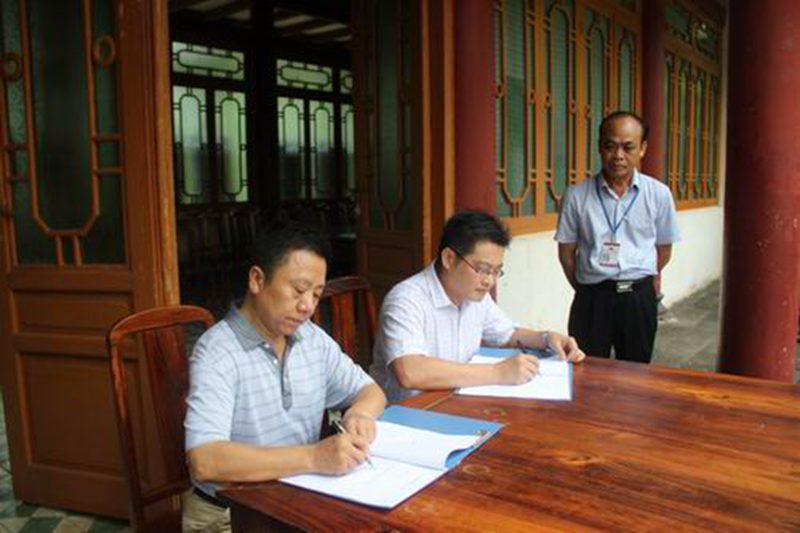 社会实践队伍首先前往东坡书院。上午十点,共青团儋州市委王明魁书记与sunbet申搏官方网站张云阁副院长在东坡书院迎宾堂前共同签定了“sunbet申搏官方网站思想政治理论课东坡书院社会实践教学基地共建协议”, 签字仪式由共青团儋州市委李珠副书记主持,王明魁书记和张云阁副院长分别发表了热情洋溢的讲话。随后,sunbet申搏官方网站张朔人教授现场为学生作了50分钟题为“苏东坡海外事迹与海南‘客贤’记忆”的精彩演讲,演讲不断被学生热烈的掌声所打断。现场教学结束后,内导引领学生在东坡书院园区进行了实地参观考察。