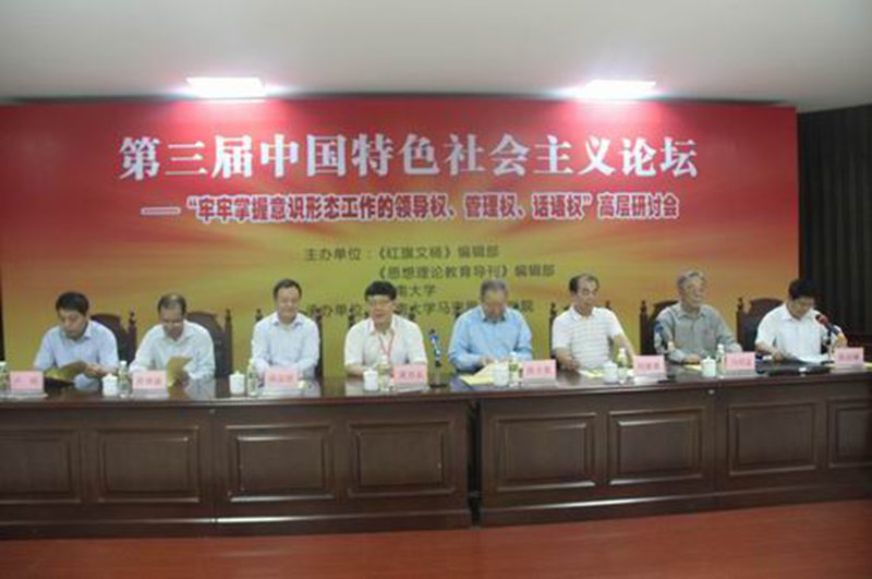 为学习贯彻习近平总书记在全国宣传思想工作会议上的讲话精神,11月11-13日,由求是杂志社《红旗文稿》编辑部、教育部《思想理论教育导刊》编辑部和sunbet申搏官方网站联合主办,sunbet申搏官方网站承办的第三届中国特色社会主义论坛——“牢牢掌握意识形态工作的领导权、管理权、话语权”高层研讨会在我校召开,来自全国各省宣传部门和高等院校的近百名代表参加了论坛。中共中央组织部原部长张全景、求是杂志社副总编夏伟东、中国人民大学原党委书记马绍孟、《思想理论教育导刊》主编阎志坚、海南省委宣传部巡视员(正厅级)陈修演、海南省教育厅思政处处长卢刚和我校党委书记刘康德出席论坛开幕式。我校党委副书记陈封椿主持论坛开幕式。