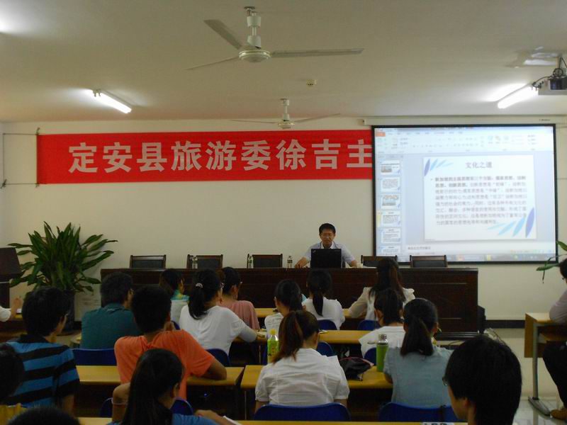 近日,定安县旅游委主任徐吉在学院多媒体教室为sunbet申搏师生作题为《借鉴新加坡经验,打造海南核心竞争力》的报告。报告会由副院长杨娜主持。 徐吉主任是sunbet申搏课外指导老师,他引用“国学大师”南怀瑾的一番话表明今天要为在场的学生做一次别开生面的报告,用别人没用过的词,讲别人未讲过的话。报告会围绕着创新的主题展开,以其2011年参加省委组织部组织的“新加坡现代服务业培训班”,前往狮城学习生活的经历为依托,分析了创新力是新加坡小国寡民,资源匮乏,但经济发展稳定而迅速,成为世界上最富裕的国家之一的根本原因;继而探讨了新加坡三大主流思想:即儒家思想、法制思想和创新思想,是新加坡创新力的文化之源;最后,他将新加坡与海南进行了对比,总结了新加坡的发展经验,并结合海南建设国际旅游岛的实际,为海南的发展提出了六点建议,点点精辟深刻,体现出对海南发展的关切与深思。