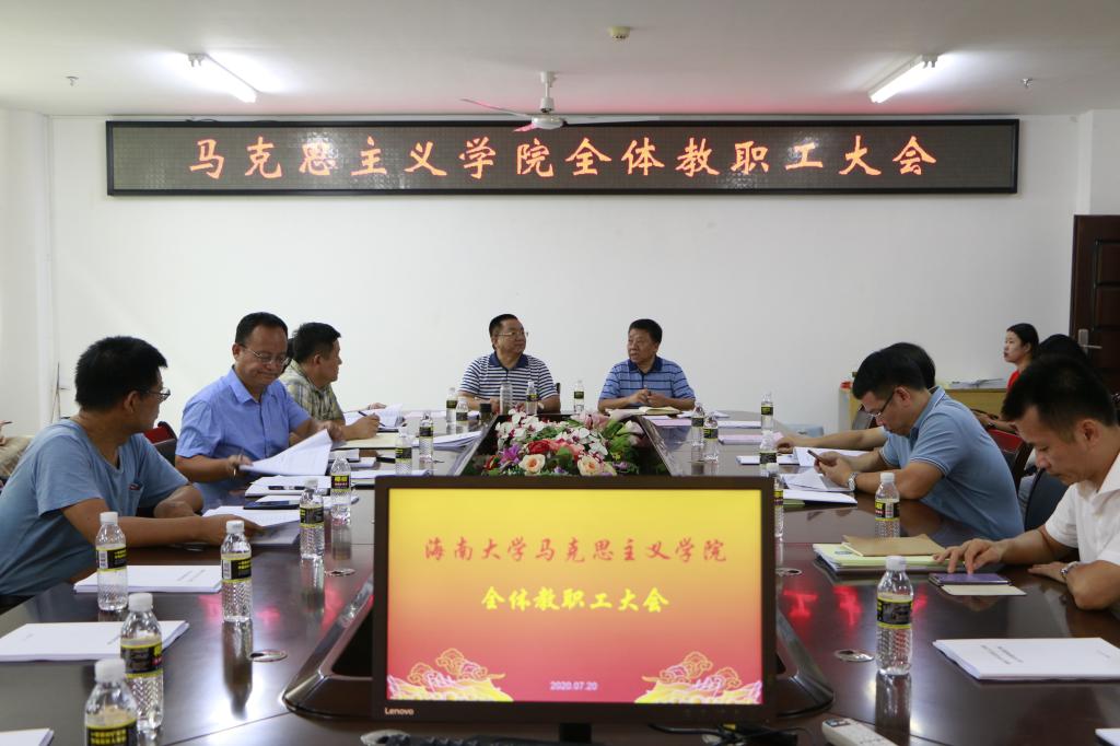 2020年7月20日下午,sunbet申搏官方网站在社科楼A-311召开全体教职工大会,院长张云阁、院党委书记段捷频、副院长杨娜、院党委副书记张井富、副院长王善、副院长秦晓华出席,全体教职工参加会议。院长张云阁主持会议。