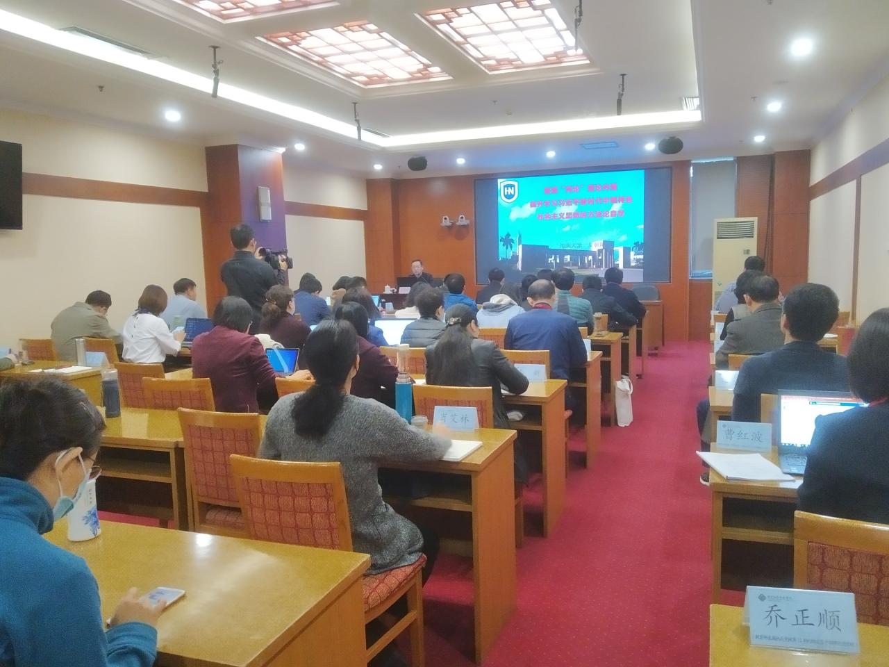 2020年10月22日上午,应教育部机关党校邀请,sunbet申搏官方网站吴朝阳副教授在国家教育行政学院为教育部机关处级党员干部理论进修班讲课。吴朝阳副教授的报告题目是《重温“两论”理论内涵 提升学习习近平新时代中国特色社会主义思想的方法论自觉》,报告会由教育部中央电化教育馆朱广艳主任主持。