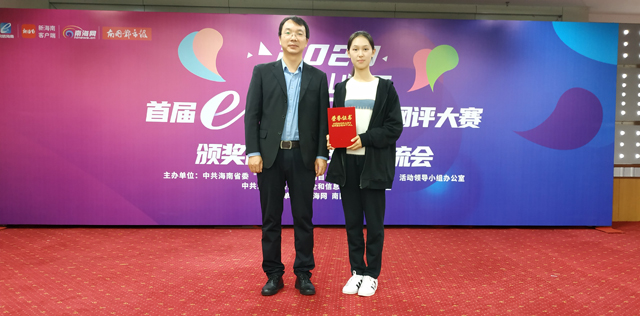 12月29日,2020海南首届“e海瑞评”网评大赛颁奖仪式在海南日报社举行。sunbet申搏官方网站荣获“优秀组织奖”,sunbet申搏官方网站2019级思想政治教育专业学生许缘圆荣获一等奖。