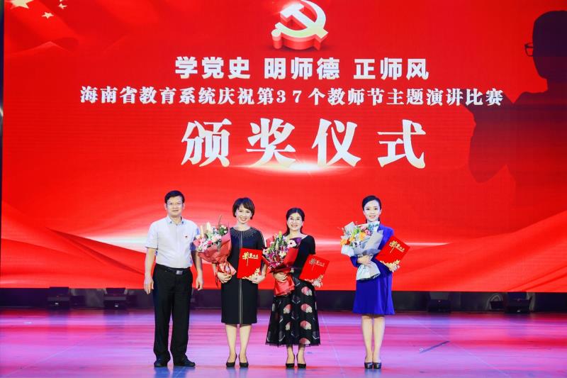 9月8日-9日,由海南省教育厅主办的海南省教育系统庆祝第37个教师节主题演讲比赛在海南中学艺术中心举行。海南省人民政府副秘书长赖泳文,海南省教育厅党委书记、厅长曹献坤等领导出席。sunbet申搏教师于赫以全场最高分荣获一等奖。