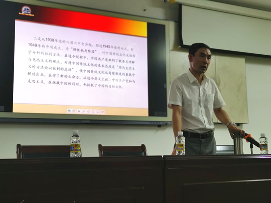 在讲座中,胡海波教授围绕“中国共产党与中华传统文化的百年历史考察”,深入阐释了中国共产党与传统文化的百年互动关系。他把中国共产党与传统文化的关系分为三个历史时期:一是中国共产党对传统文化的文化批判时期;二是中国共产党为进行社会主义新文化建设的艰难探索的文化转型时期;三是中国共产党弘扬优秀传统文化,重铸中华文化新辉煌时期。胡海波教授还进一步分析了传统文化对中国共产党及其革命实践所起到的能动作用,并就其理论价值和历史意义进行了深入讲解。胡海波教授强调,中国共产党人一直秉持中华文化立场,不断弘扬优秀传统文化、革命文化和社会主义先进文化,为牢固树立中国特色社会主义的制度自信、理论自信和道路自信奠定了深厚的文化基础。