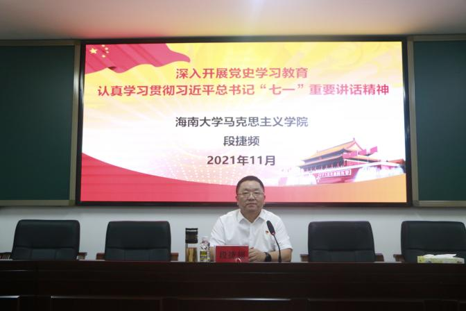 学院党委书记段捷频为全体发展对象作认真学习贯彻习近平总书记“七一”重要讲话精神的主题党课培训。他系统介绍了“七一”重要讲话的主要内容和精神要义。