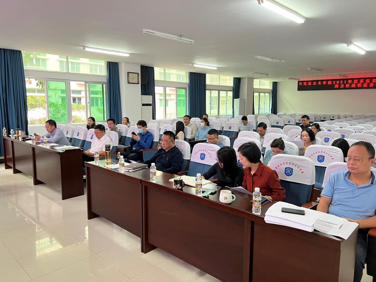 3月6日上午,sunbet申搏官方网站在社科楼A309举行2021年度系室主任、党支部书记、班主任述职汇报会。院长张云阁、院党委书记段捷频、副院长杨娜、王善、吴朝阳、秦晓华,院党委委员、副处级辅导员张君成,全体系室主任、党支部书记、班主任参加会议。