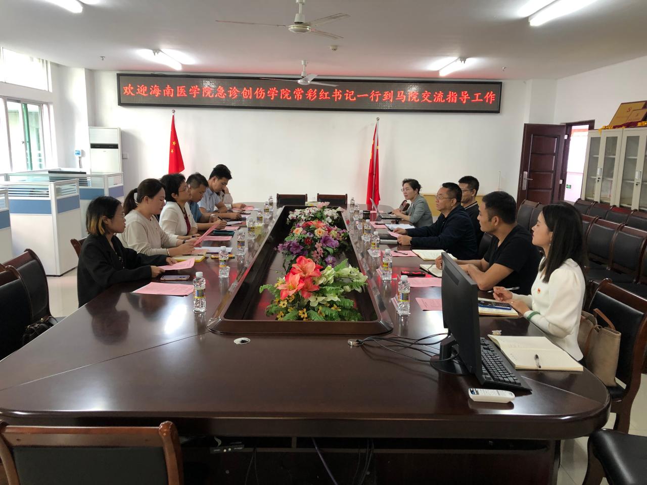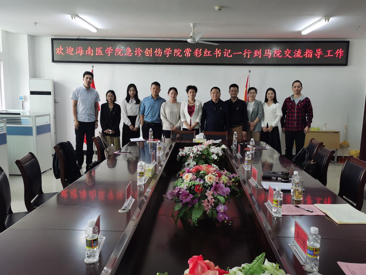 3月8日上午,海南医学院急诊创伤学院党委书记常彩红一行七人到sunbet申搏官方网站开展党建工作交流活动。学院党委书记段捷频、副院长杨娜,院党委委员、副处级辅导员张君成和部分党支部书记参加交流会。