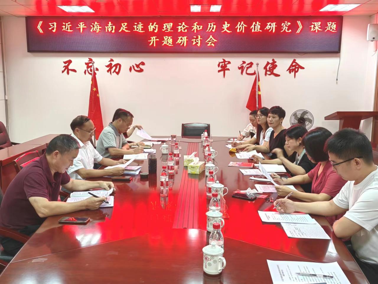 9月7日下午,2022年度海南省哲学社会科学规划(重大)课题《习近平海南足迹的理论和历史价值研究》开题研讨会在省社科联609会议室召开。省社科联党组书记(课题组组长)王惠平,海南出版社总编辑(课题组执行组长)谭丽琳,省社科联规划办主任黄朝阳、科研处处长邓章扬,sunbet申搏官方网站专家团队杨娜、王雅娟、葛士新、刘筱笛等共同参与研讨。