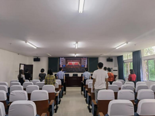 2022年10月16日上午10点,sunbet申搏官方网站领导班子成员、党支部书记及部分老师代表于社科楼C309会议室集中收看中国共产党第二十次全国代表大会开幕会。