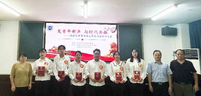 中共海南省委宣传部理论处处长曾繁诗、海南省社会科学联合会二级巡视员黄朝阳、中共海南省委办公厅调研处督查专员秦禧、海口日报社总编辑丁宁、海口广播电视台总编吴清德、海南开放大学报社编辑部主任张艳敏、海南省委网信办网络生态治理处三级调研员周宏伟担任大赛评委。