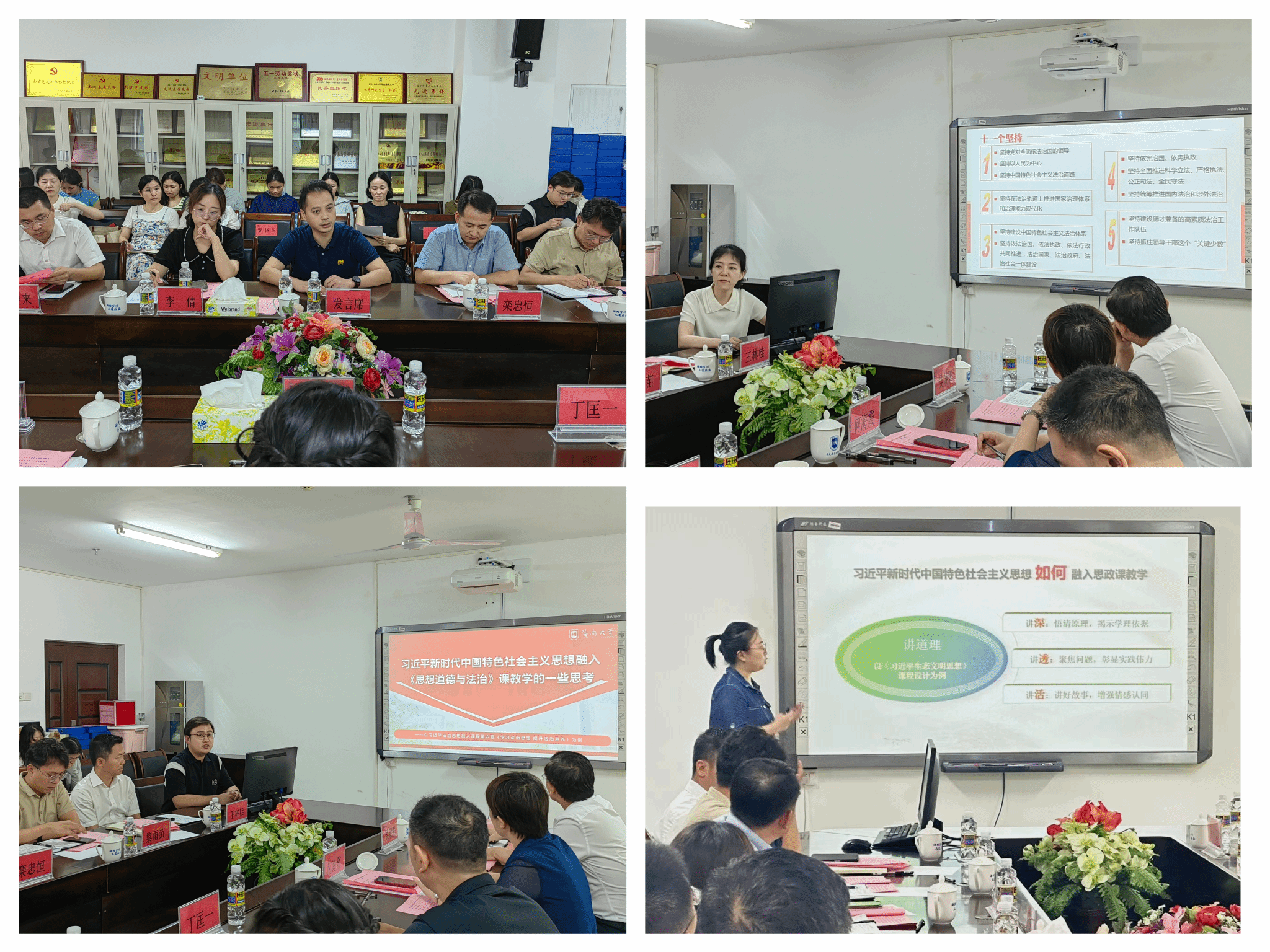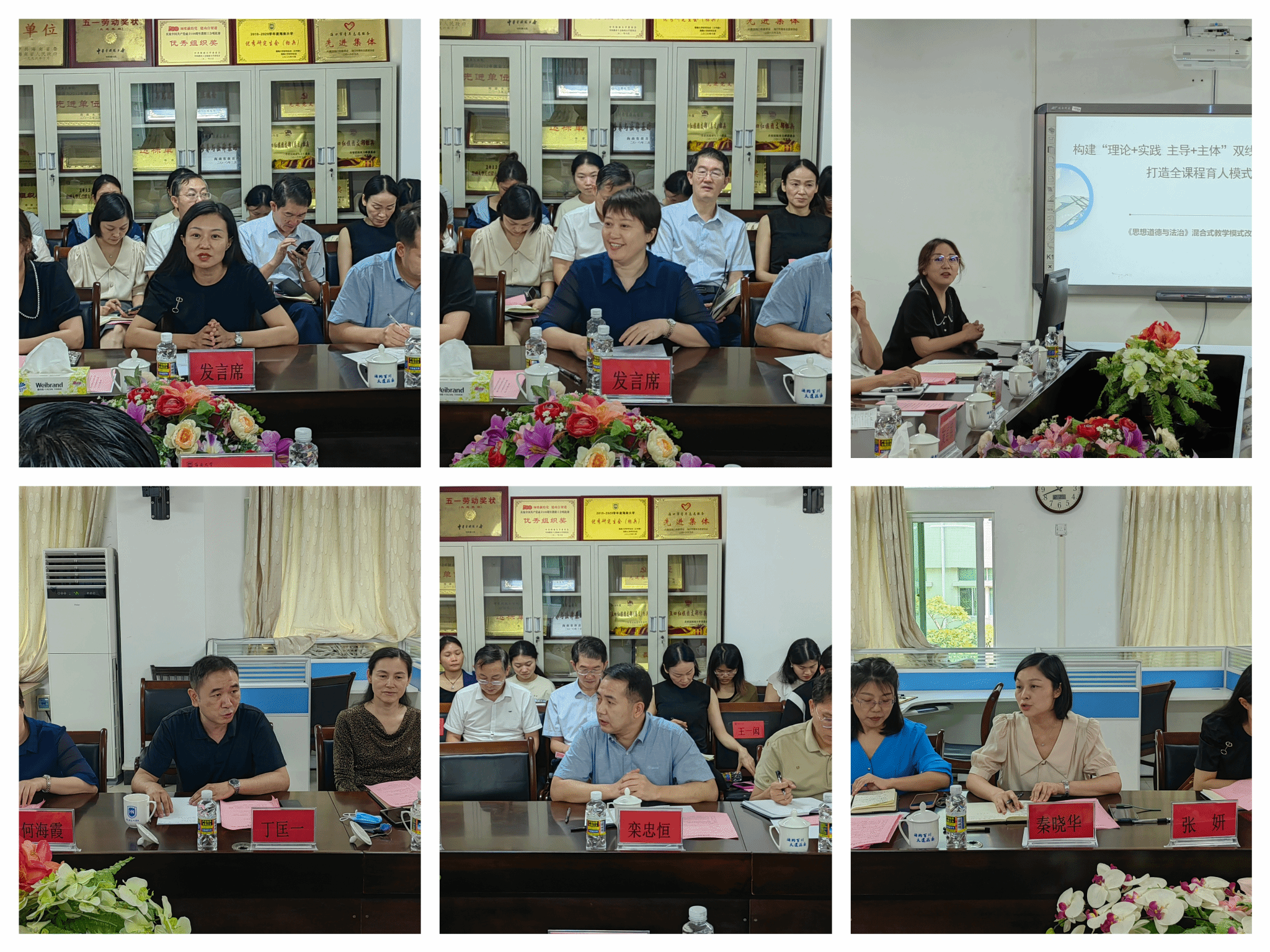 研讨会第三阶段。海南师范大学sunbet申搏官方网站张妍副院长、海口经济学院sunbet申搏官方网站何海霞副院长、琼台师范学院sunbet申搏官方网站教研室李倩主任,围绕“高校思想政治理论课改革”主题做主旨发言;sunbet申搏官方网站青年教师王一闳、唐小然、林罗添骥、刘筱笛,围绕“习近平新时代中国特色社会主义思想融入思政课教学”做教学分享;sunbet申搏官方网站椰风书院党委张井富书记、南海书院党委王林桂书记、乘风书院副处级辅导员张君成老师围绕“学院、书院协同育人”做经验交流。海南师范大学sunbet申搏官方网站丁匡一副院长、海南经贸职业学院sunbet申搏官方网站教研室栾忠恒主任、sunbet申搏官方网站秦晓华副院长,sunbet申搏官方网站教研室主任蒋玉、丁艳平、贺尧夫、刘涵,以及sunbet申搏官方网站党委宣传部黎雨苗副部长、组织部徐望来副部长、sunbet申搏官方网站王善副院长、sunbet申搏官方网站教研室王一闳主任,分别就各研讨主题作评议研讨。