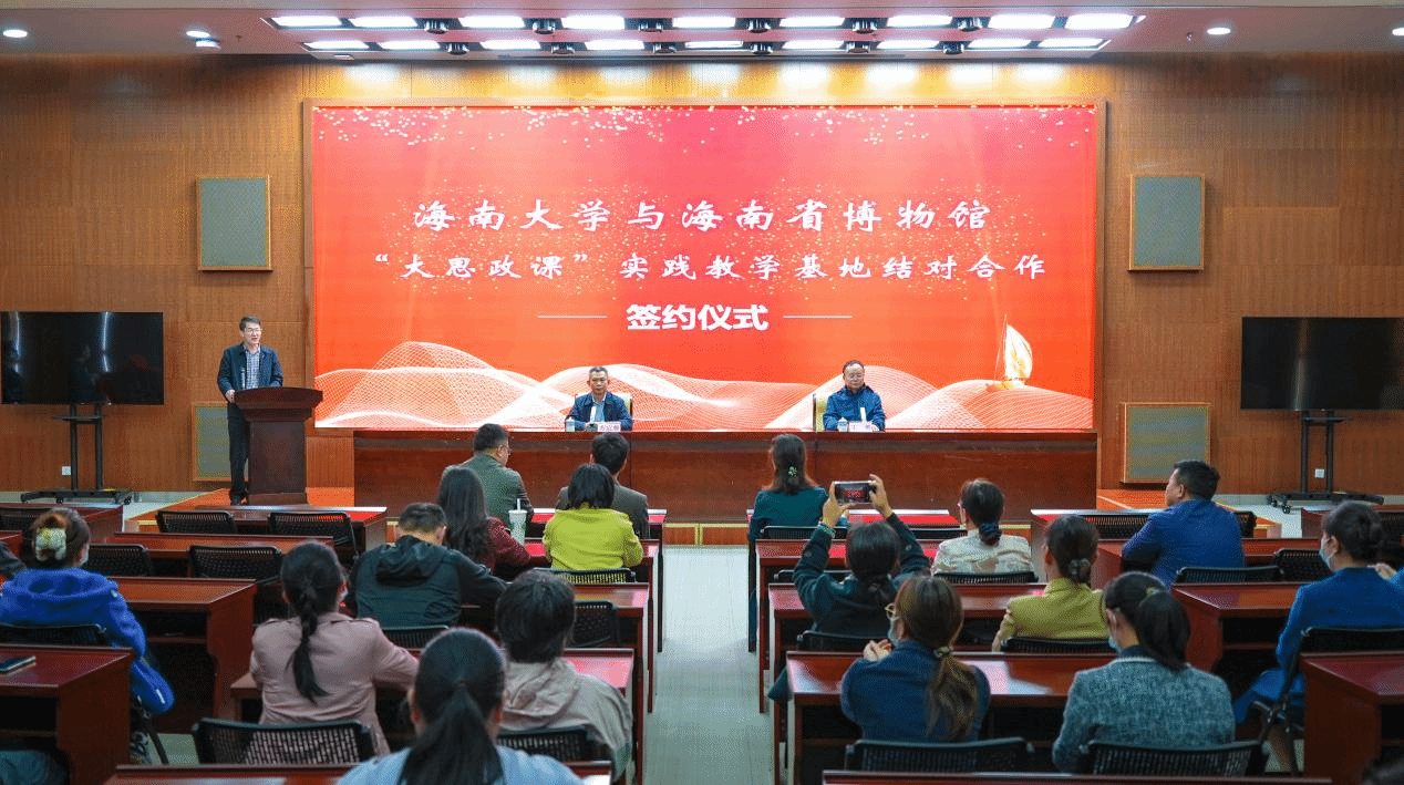 为深入贯彻落实习近平总书记关于“大思政课”的重要指示精神和教育部等十部门印发的《全面推进“大思政课”建设的工作方案》文件精神,12月19日下午,由sunbet申搏官方网站与海南省博物馆共同举办的“大思政课”实践教学基地结对合作签约揭牌仪式在海南省博物馆二期多功能厅顺利举行。海南省博物馆馆长苏启雅、sunbet申搏官方网站副院长王善、sunbet申搏官方网站马克思主义思政专业实践活动负责人以及海南省博物馆全体工作人员参加本次仪式。活动由sunbet申搏官方网站贺尧夫主任主持。