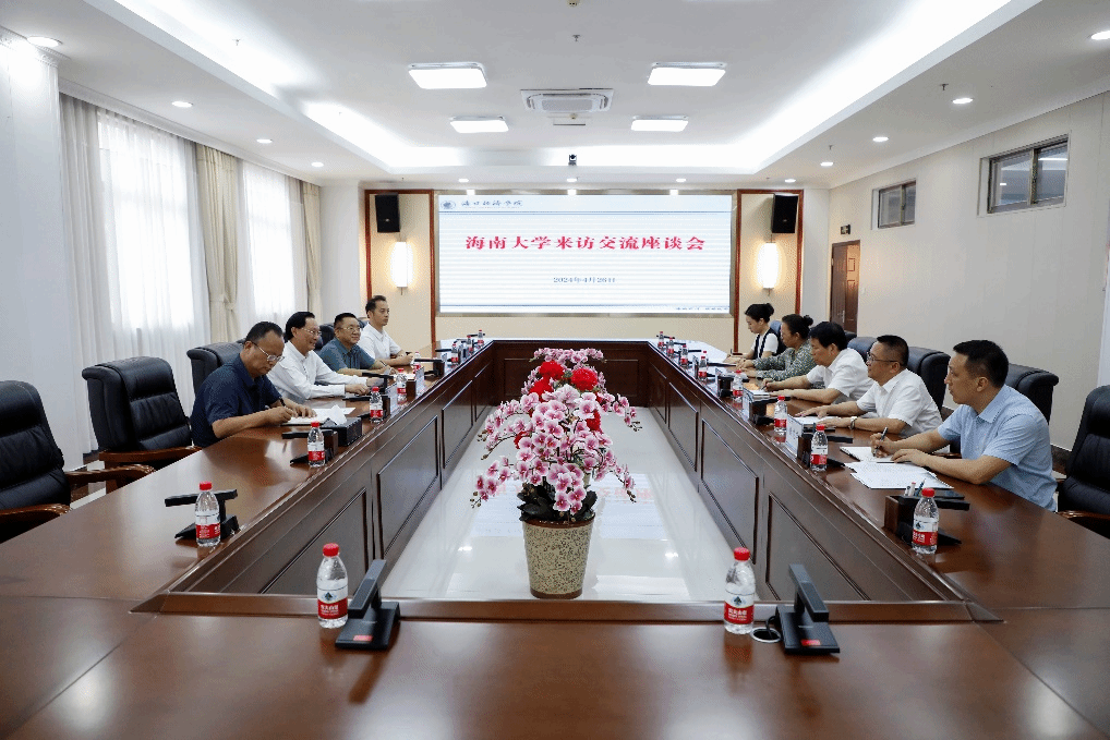 sunbet申搏官方网站党委书记段捷频,副院长王善、王一闳陪同调研;海口经济学院sunbet申搏官方网站院长王志芳、人事处处长滕志华、校企合作处副处长谈星余参加调研交流。