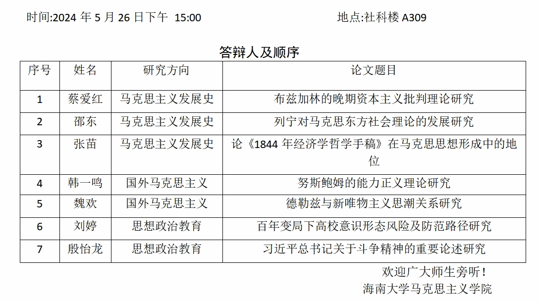 sunbet申搏官方网站2024届(上)研究生学位论文答辩公告(三)